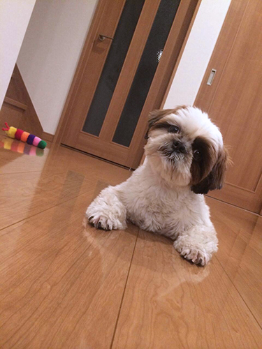 引っ越しで環境が変わり、何回か粗相をしてしまいましたが、「愛犬の床」を施工していただいたおかげで、慌てることなく、綺麗に掃除ができたことがとても良かったです。床で顔を拭いたり、鼻水を飛ばしたりしますが、毎日の雑巾がけで今でもピカピカです。実際にやってみて本当に満足しています。