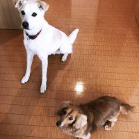 ミックス(マルチーズ×プードル) 「グースカくん」♂/4才 「ねねちゃん」♀/6ヶ月 愛知県安城市 S さま邸・平成29年4月22日施工 膝蓋骨脱臼と診断されてしまいました… ねねが膝蓋骨脱臼と診断されてしまい、ソファー …