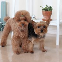 ヨークシャーテリア 「テトくん」♂/9才 トイ・プードル 「マルクルくん」♂/2才 東京都大田区 Sさま邸・平成25年6月29日施工 フローリングがすべるので、愛犬の持病が心配でした。 2匹とも小型犬特有の …