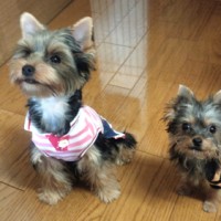 ヨークシャー・テリア 「しずくちゃん」♀/5ヶ月 「くるみちゃん」♀/3ヶ月 神奈川県足柄郡 Wさま邸・平成25年9月17日施工 おしっこと二匹の関節が心配・・・・ 2ヶ月違いの二匹なのに、親子と間違えられ …