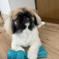 ペキニーズ あもちゃん♀ 1歳 兵庫県芦屋市 H様邸 「愛犬の床」を選んだ理由 滑りによるケガや関節への負担が心配で「愛犬の床」に問い合わせしました。 タイルカ …