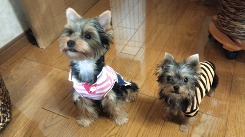 2ヶ月違いの二匹なのに、親子と間違えられる程のサイズの差があります(笑) おしっこを漏らしてばかりなので床も心配、また2匹になってから走り回った時、足裏の毛が邪魔して滑って・・・・ヨーキーは脱臼しやすく関節がおかしくなりやすいので、自分に出来る事はないかと思っていました。 他社の製品も見積もってもらったのですが、滑り止めの効果が無かったことと10年保証だったので止めました。