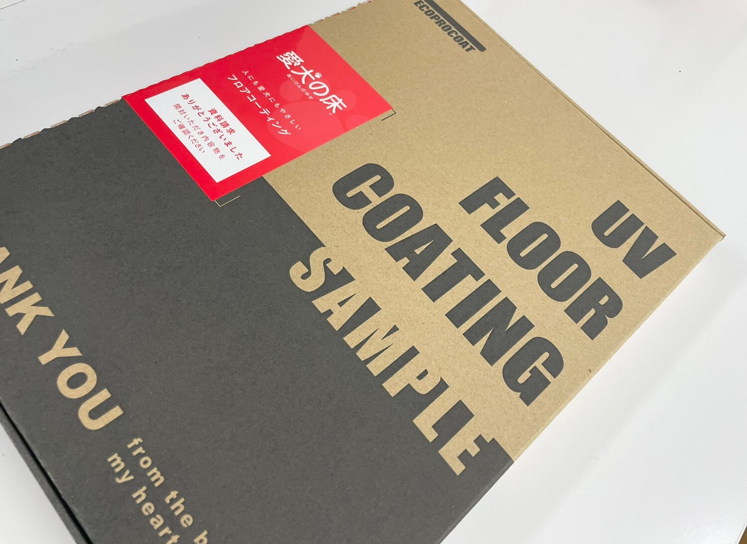 小さいサイズではございますが、実物のフローリングに愛犬の床を施工したサンプルをお送りします。
