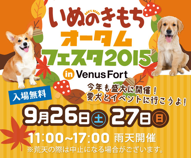 「いぬのきもち オータムフェスタ2015」が、2015年9月26日、27日に東京お台場ヴィーナスフォートにて、開催されました。