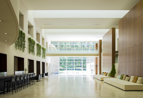吹き抜けが印象的なフロントロビーregina_tateshina02今回は、こちらのロビーの石材フローリングとレストラン、フィットネスルームのフローリングに、『愛犬の床』を施工いたしました。