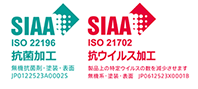 SIAAマークISO22196法/ISO21702法により評価された結果に基づき、抗菌製品技術協議会ガイドラインで品質管理・情報公開された製品に表示されています。