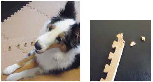 いたずら大好きなえこちゃんは、やっぱりかじってしまっていました…。飲み込んでいないか、ちょっと心配。