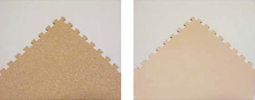 パズルのように組み合わせて敷くようになっていて、端用に凹凸をなくすための、細い棒状のパーツも付属。厚さは全体で8ミリ、表面の1ミリ程度がコルクで、下はクッション材のようなものでできています。なので、重さも印象ほどではなく、女性でも問題なく取り扱えます。