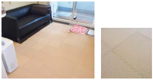 裏面がツルツルして、1枚置いただけではフローリングの上をすべってズレてしまいますが、枚数を組み合わせて敷きつめてしまえば、重さもあって、そう簡単にズレたりはしません。