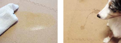 パッケージには「はっ水生・サッとひと拭きでキレイに」と書かれているのでが…実際には浸み込んでしまいました。へたに拭こうとすると、返って範囲が広がってしまう具合です。10分ほど放置しておけばカンタンに乾くのですが、肝心のシミやニオイは、そのまま残ってしまいました。