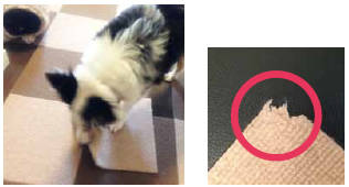 カンタンに剥がせるのは、ワンちゃんも同じ。かじった切れ端を飲み込んでしまわないか心配…。