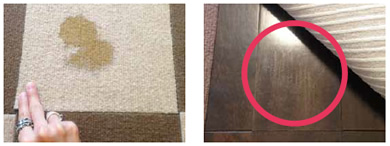 剥がした際、写真のように跡だけでなく、マット裏のゴムが床面に付着、カンタンには落とせなくなってしまうことも。ワックスを塗っている場合や、床の種類によっては、注意が必要です。