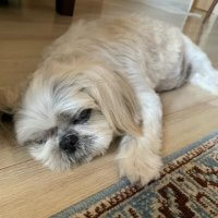 愛知県愛知郡 Mさま邸 シーズー ころんちゃん 4歳 「愛犬の床を施工されていたホテルビワドック、レジーナ伊豆無粼さんの室内で思いっきり走りまわっていて同じ床にした …